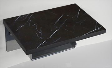 Nero Marquina $89.00 Toilet Paper Holder Matte Black with Polished Nero Marquina Porcelain Stone In Stock Finish In Stock