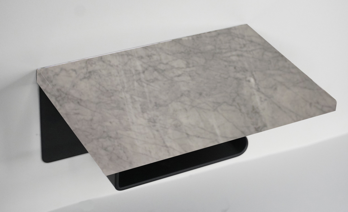 White Carrara - Matte Black $99.00 Toilet Paper Holder Matte Black with Polished White Carrara Marble Stone In Stock Finish In Stock